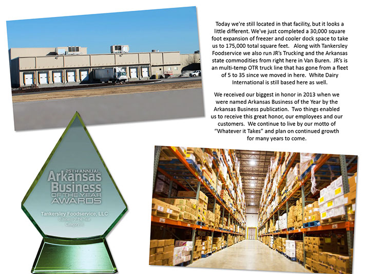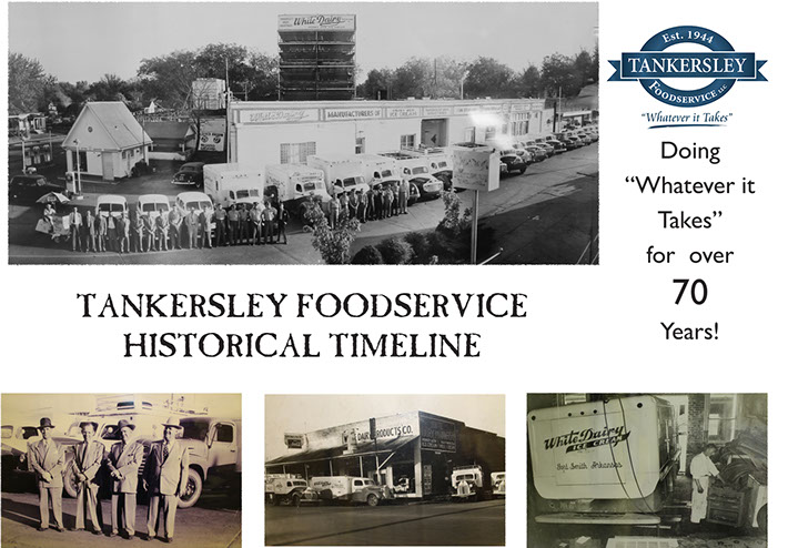 Tankersley Foodservice was founded in 1944 in downtown Fort Smith, Arkansas as a small frozen foods distributor. Originally, it was named Tankersley Bros. Frozen Food after the four Tankersley brothers who owned the company. Woody, Ross, Pete, and Walter Sr. had started White Dairy Ice Cream Company in 1929 and decided to get into the food distribution business 15 years later.