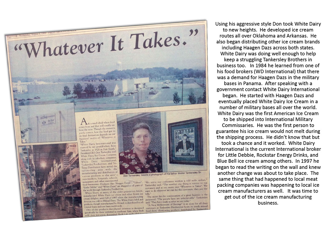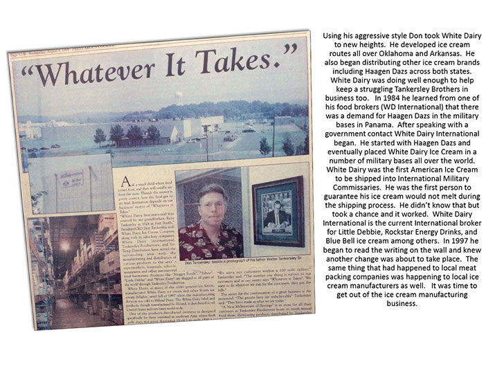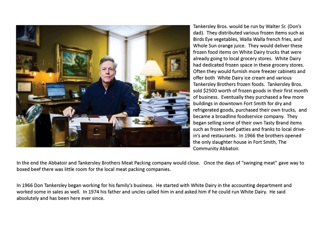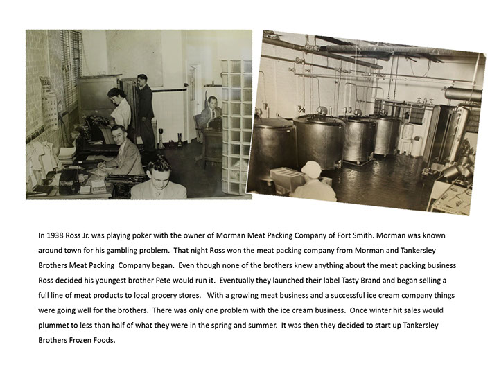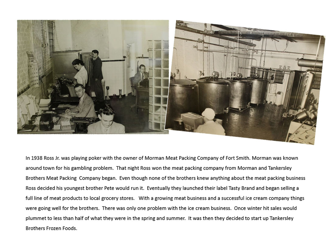 They distributed frozen and institutional foods products around the Fort Smith region along with their own Tankersley meats which they packed at their nearby Tankersley Meat Packing Company.